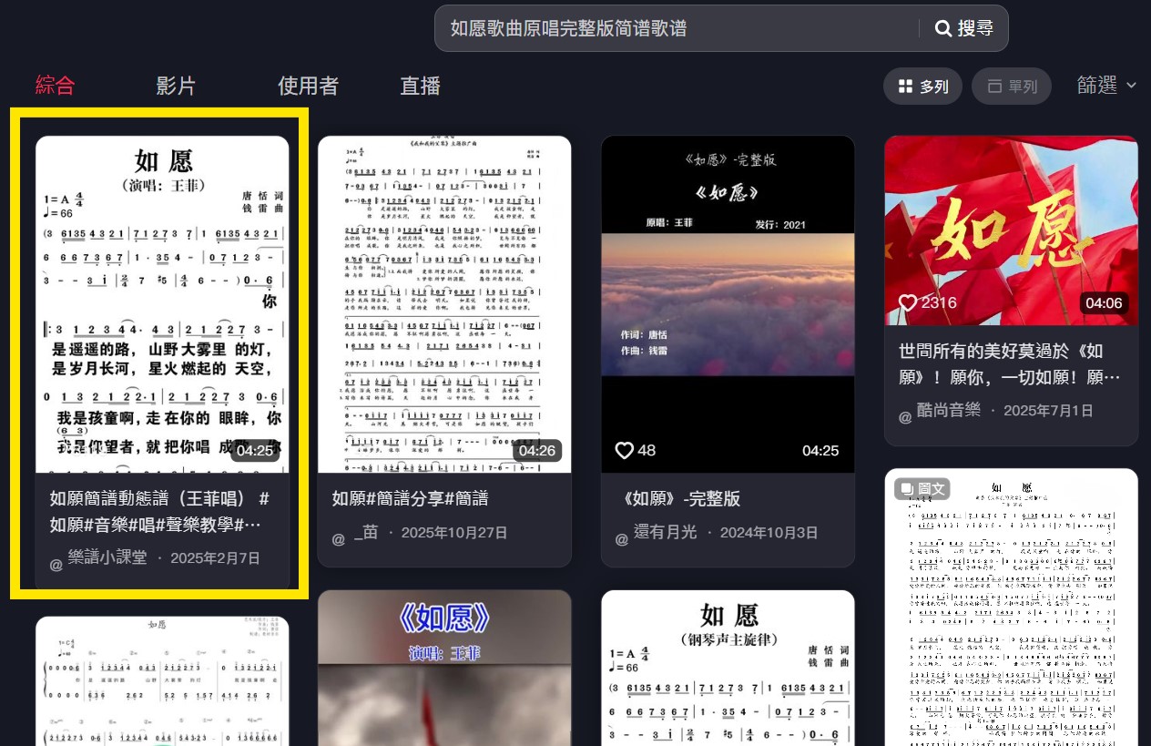 請跟著影片熟練歌曲,點擊下面連結進入頁面,請點附件說明的一首。
